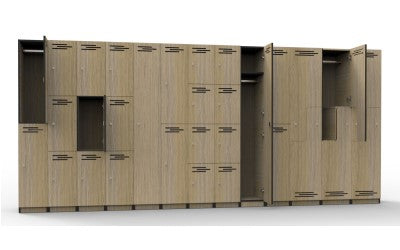 Melamine and laminate lockers are perfect for environments where aesthetics are as important as functionality. These lockers are made from composite wood materials covered with a melamine or laminate layer, offering a wide range of finishes and designs that mimic wood grain, patterns, or solid colors.