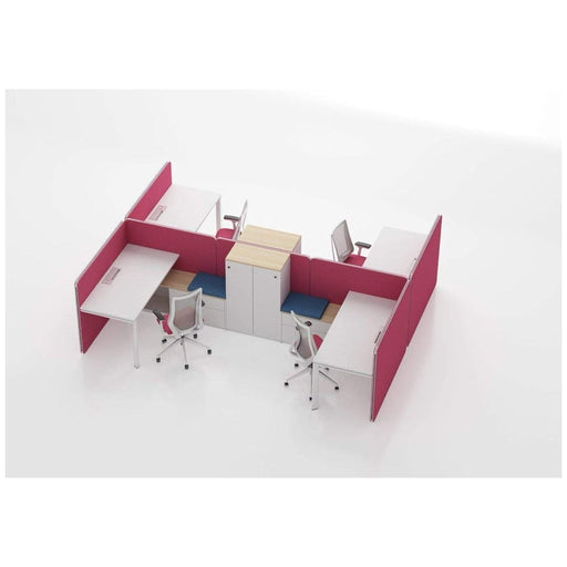 SHUSH30 Corner Workstations - 6 Person 'F' Configuration - Screen Hung Tops - White