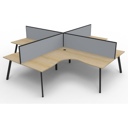 SHUSH30 Corner Workstations - 6 Person 'F' Configuration - Screen Hung Tops - Oak