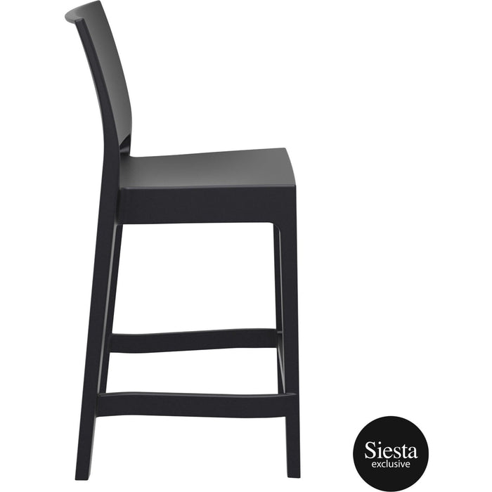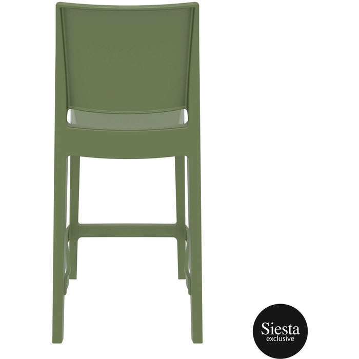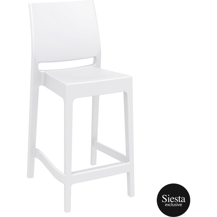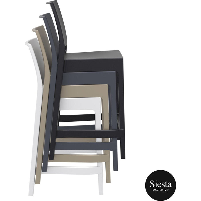 Maya stacking bar stool h.65 cm is produced with a single injection of polypropylene reinforced with glass fiber obtained by means of the latest generation of air moulding technology with neutral tones. For indoor and outdoor use.? Available in Black, Dark Grey, Taupe and White.