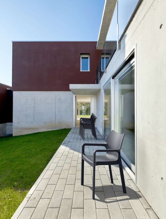 The Diva Armchair by Siesta, a sophisticated seating solution designed to elevate both indoor and outdoor commercial spaces with its blend of style and functionality. Crafted with durability in mind, this armchair is constructed from UV stabilised polypropylene reinforced with glass fibre, ensuring it withstands the test of time and environmental elements without compromising on quality.