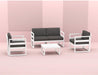 Mykonos Lounge Sets are designed for easy self assembly, it is made of durable weather-resistant resin reinforced with glass fibre. Non-metallic frame will never unravel, rust or decay. It is UV protected which insures the colours will not fade. Can be disassembled. For indoor and outdoor contract use.