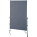 Fixed frame double sided pinboard. Powder coated steel stand with snap in fittings. All Pinboards made with aluminium frame and in Autex velour fabric hook and loop and pin receptive.