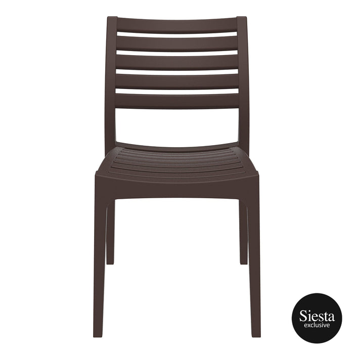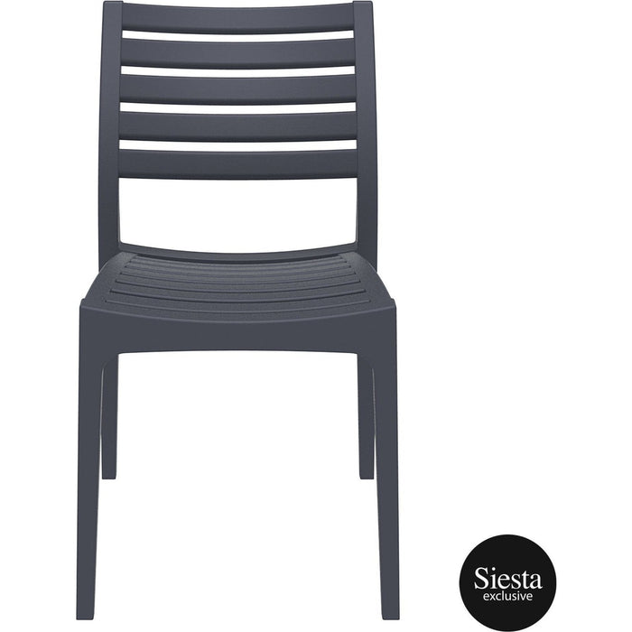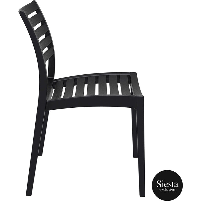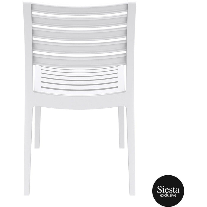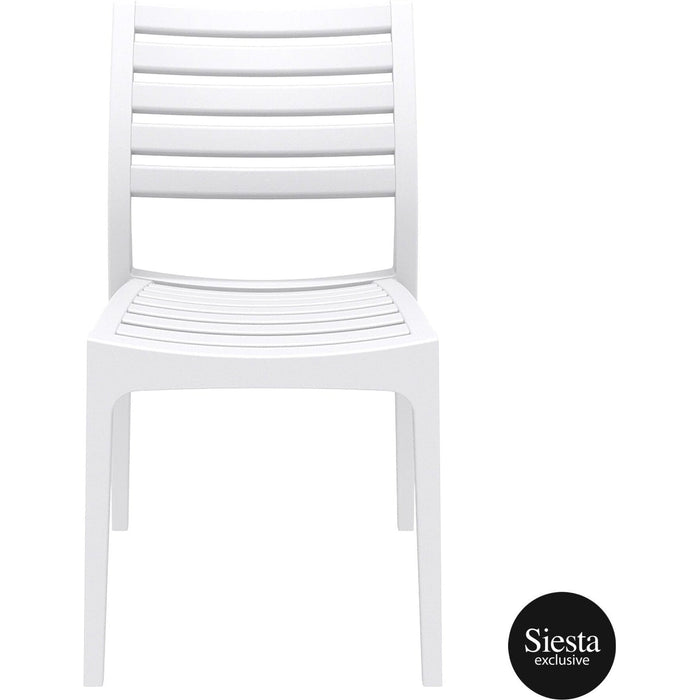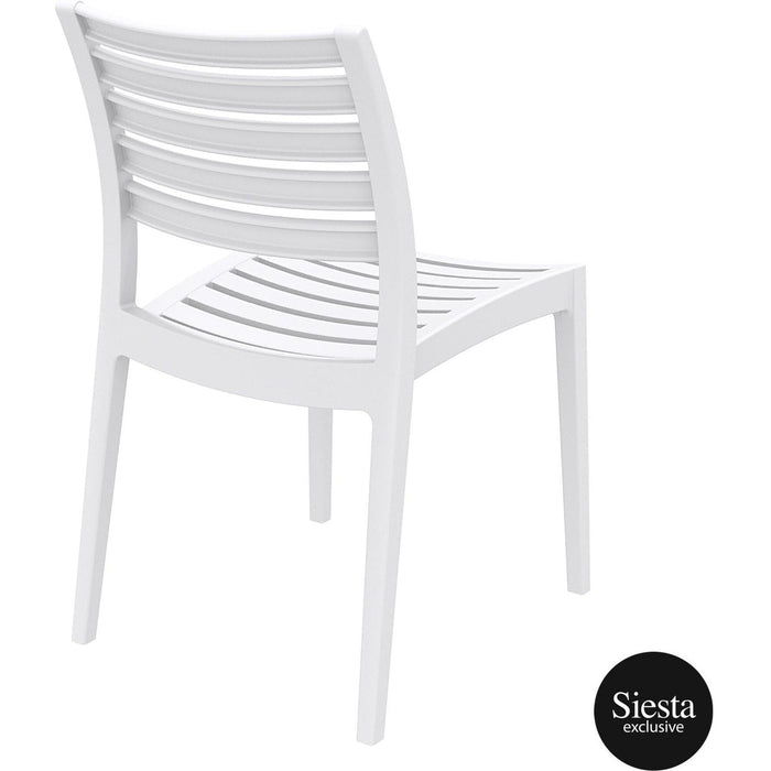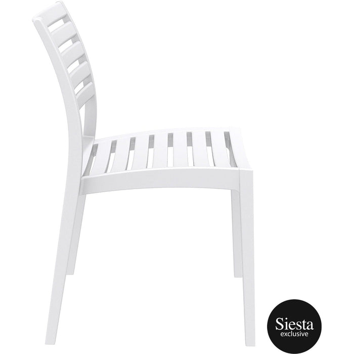 The Ares Chair by Siesta is no ordinary plastic chair. It’s extraordinary strength is due to the entire chair being one-piece injection moulded polypropylene, the legs reinforced with glass fibre for even more stability. The plastic is packed with UV stabiliser, so this chair will not fade or go brittle even in the sunniest weather conditions. Siesta’s Ares Chair is built to last in busy commercial venues, indoor or outdoor.