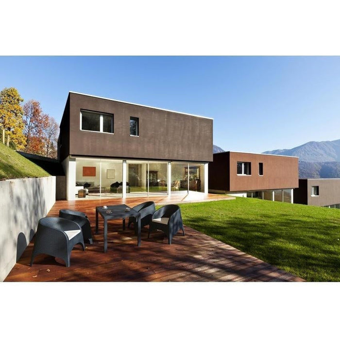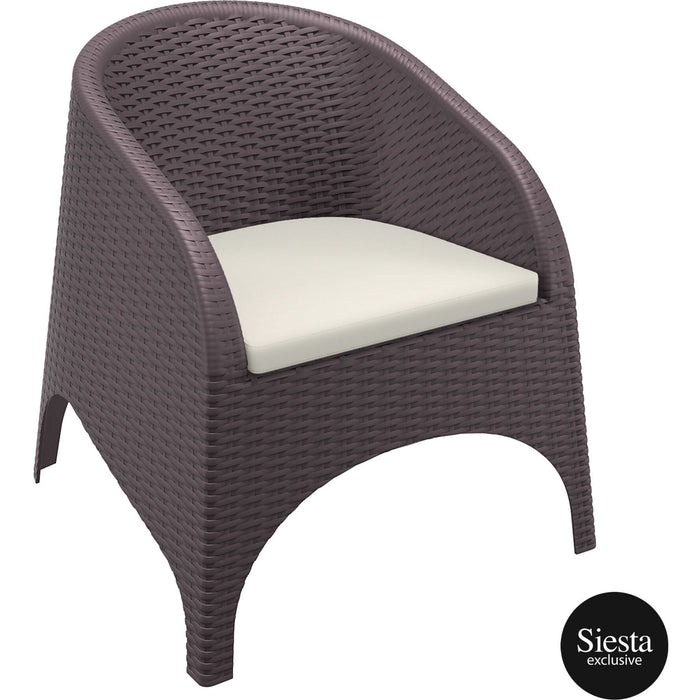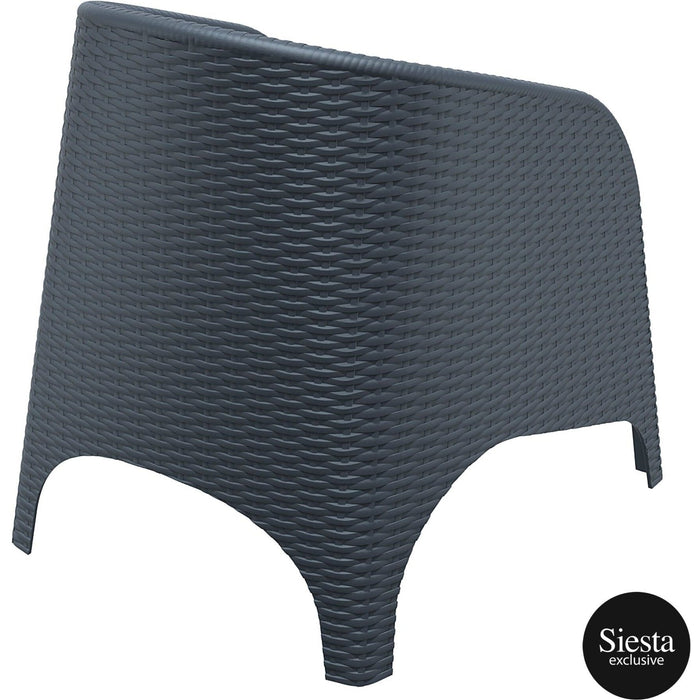 The Aruba Tub Chair is an injection moulded resin chair, the non-metalic frame will never unravel, rust or decay, with rattan look seat and back. Reinforced with glass fibre to strengthen the legs and boost the weight capacity. The Aruba Tub Chair is stackable, designed for outdoor use, UV stable and weather proof, it will not fade or go brittle in Australia’s harsh outdoor conditions. Strong yet lightweight, this chair will add class to your venue. It’s sleek profile is pleasant to the eye so this chair is as charming as it is functional. Very easy to clean, just hose it down.
