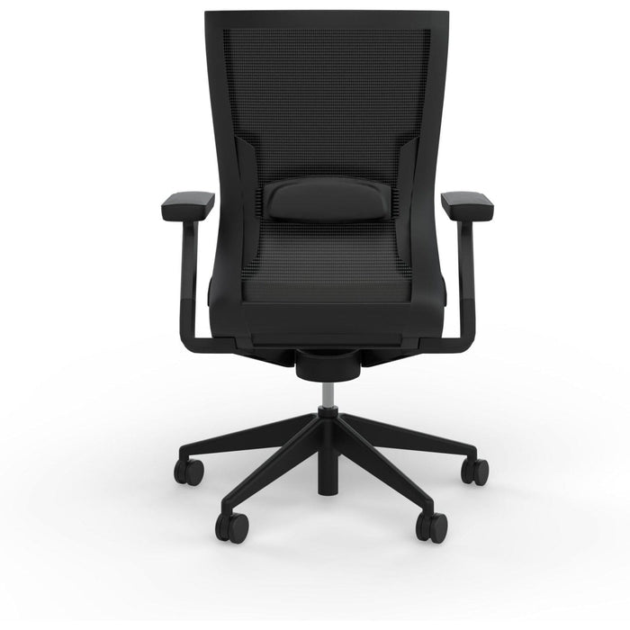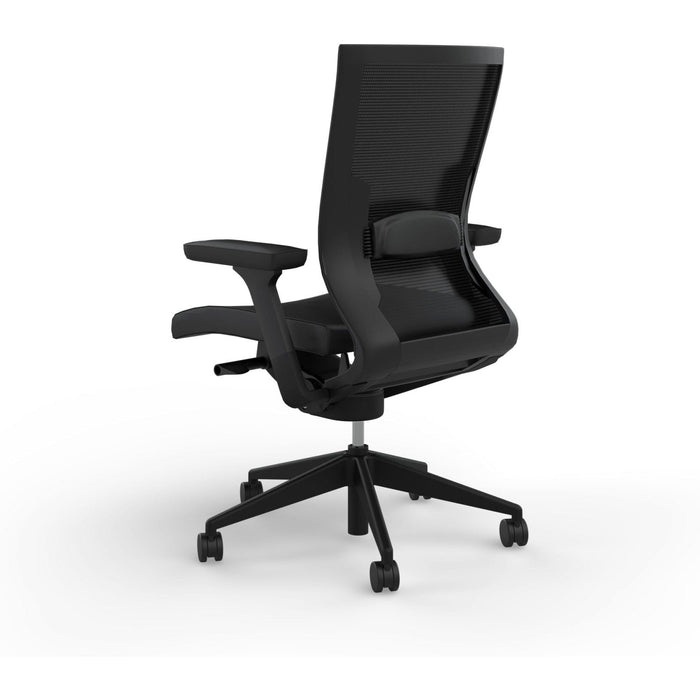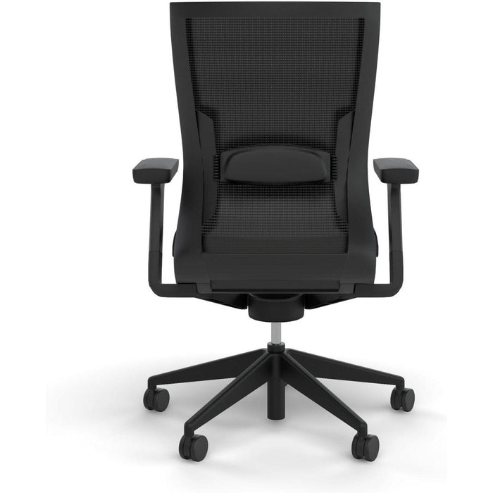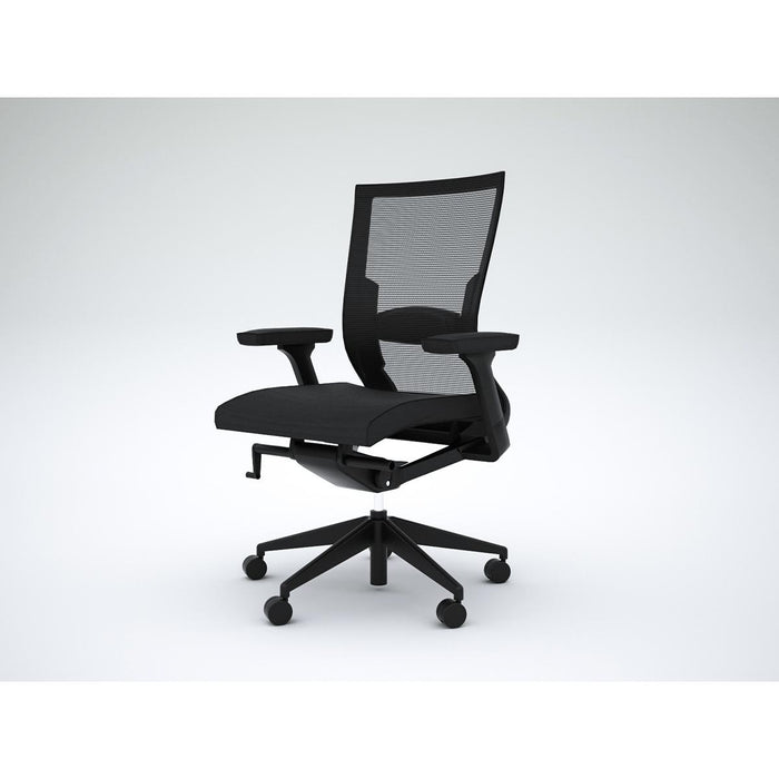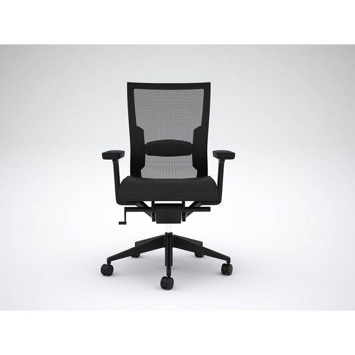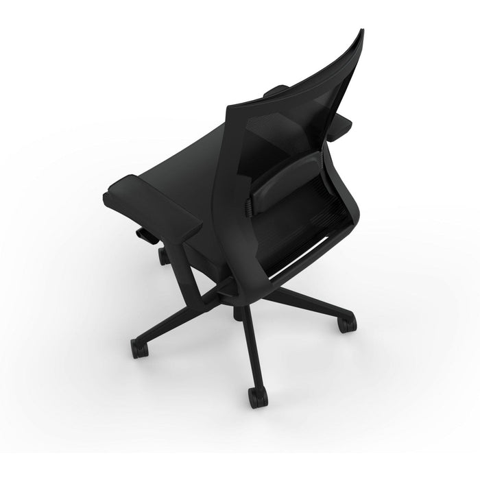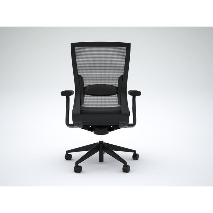 Balance Project chair with Black nylon base and black powdercoated mechanism, seat slide, high performance armrests, Black intelli-mesh backrest, zip-on seat upholstery and foam, upholstered in Black Breathe fabric.