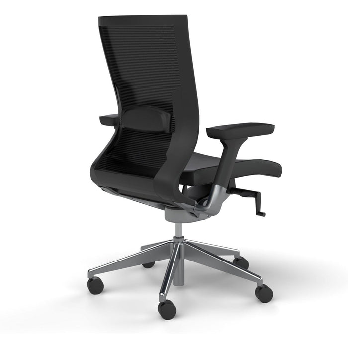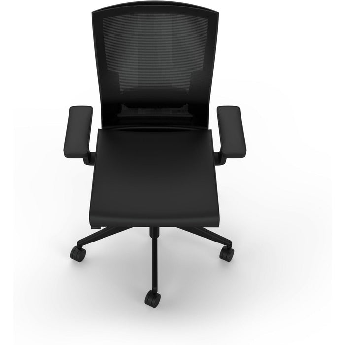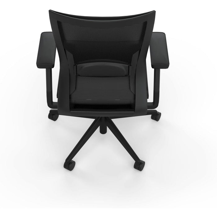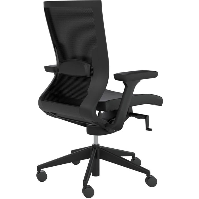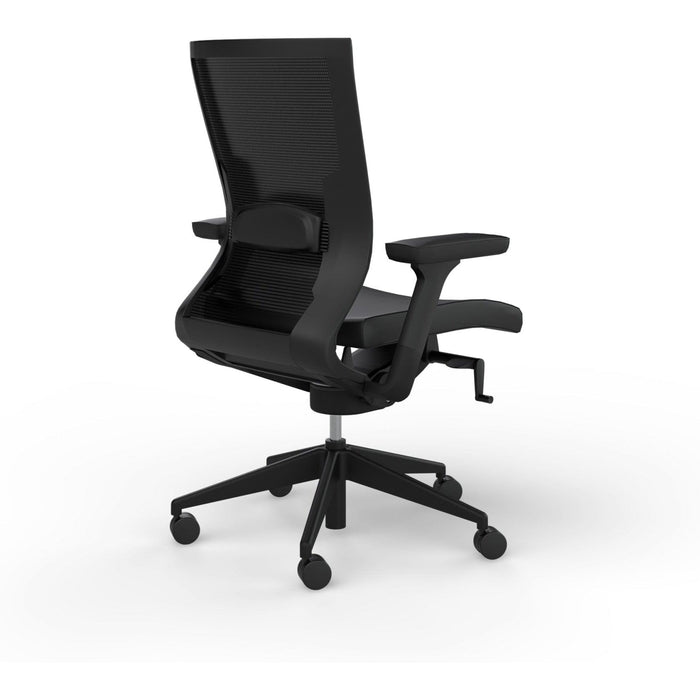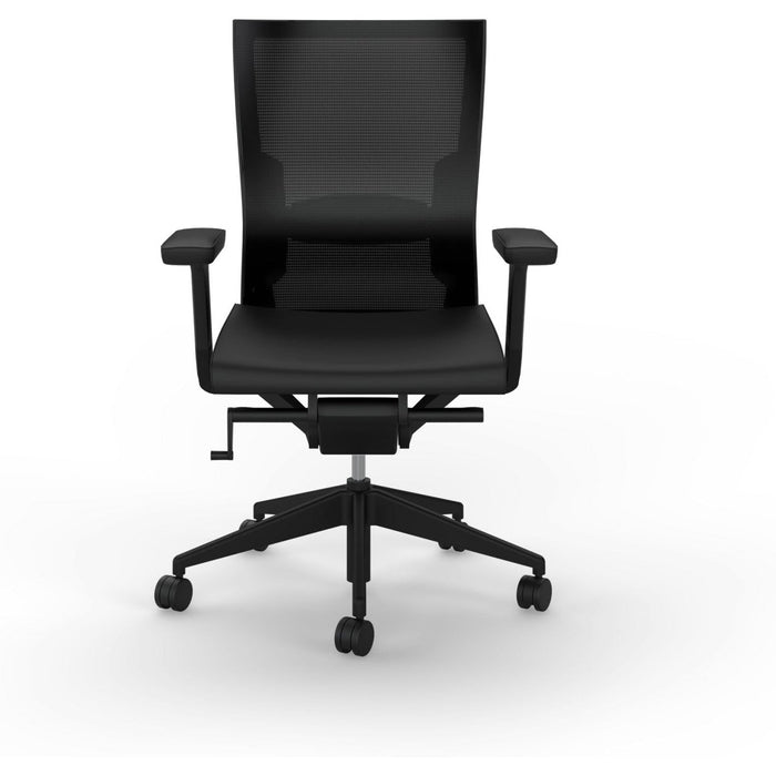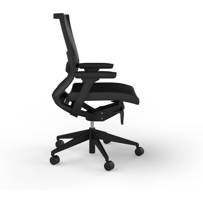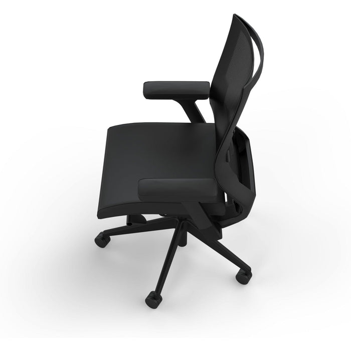 Balance Project chair with Black nylon base and black powdercoated mechanism, seat slide, high performance armrests, Black intelli-mesh backrest, zip-on seat upholstery and foam, upholstered in Black Breathe fabric.