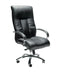 Leather padded arms and polished chromed metal base and arms exude authority.