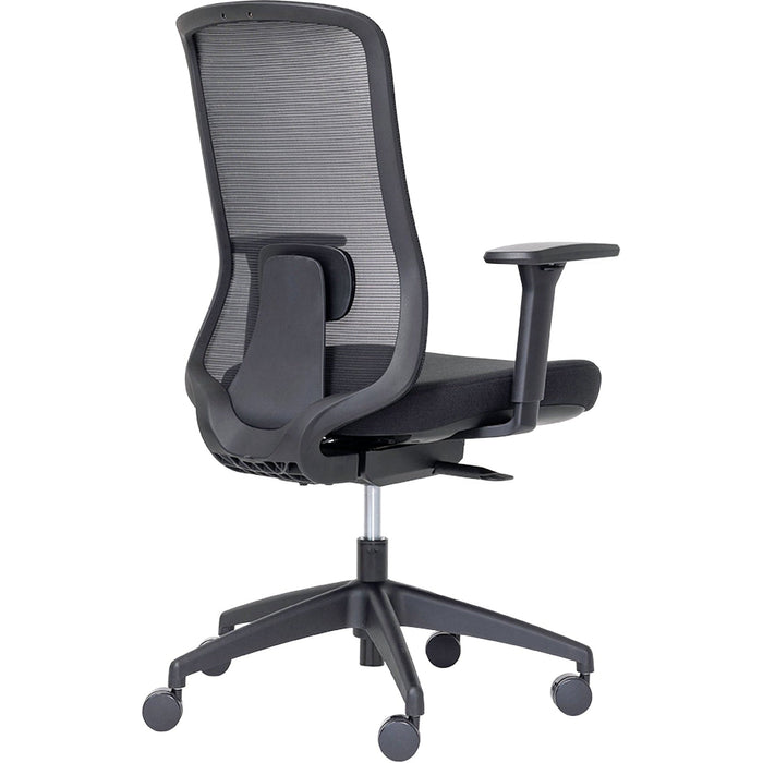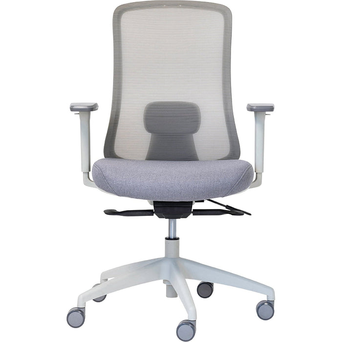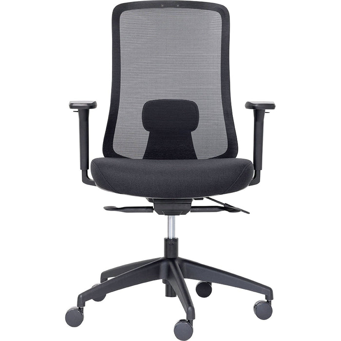 The Buro Elan is an office chair with a graceful appearance, elegant lines and advanced ergonomic features including a synchro mechanism, breathable mesh back, depth adjustable seat slide, armrests, headrest, lumbar support and optional headrest. Choose from a black or light grey frame to complement the workplace or home office interior.