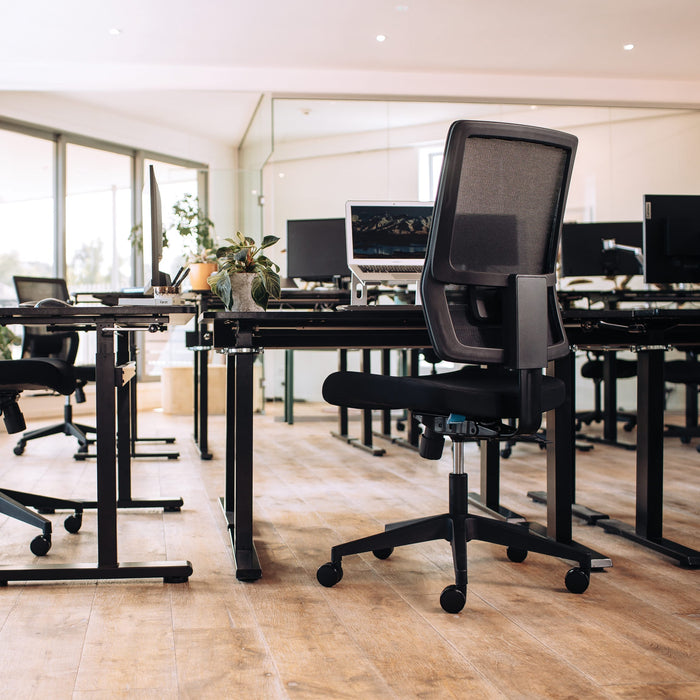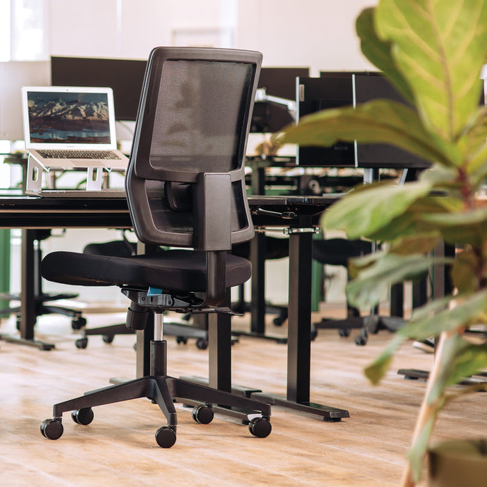The Buro Mantra is an ergonomic chair designed to aid concentration and elevate the workspace. It features a breathable mesh back and high-density moulded foam seat for comfort and fatigue prevention. The solid base and synchro mechanism with an adjustable seat slide, backrest, lumbar support and optional arms provide optimal ergonomics for every body. The perfect task chair for healthy workspaces.