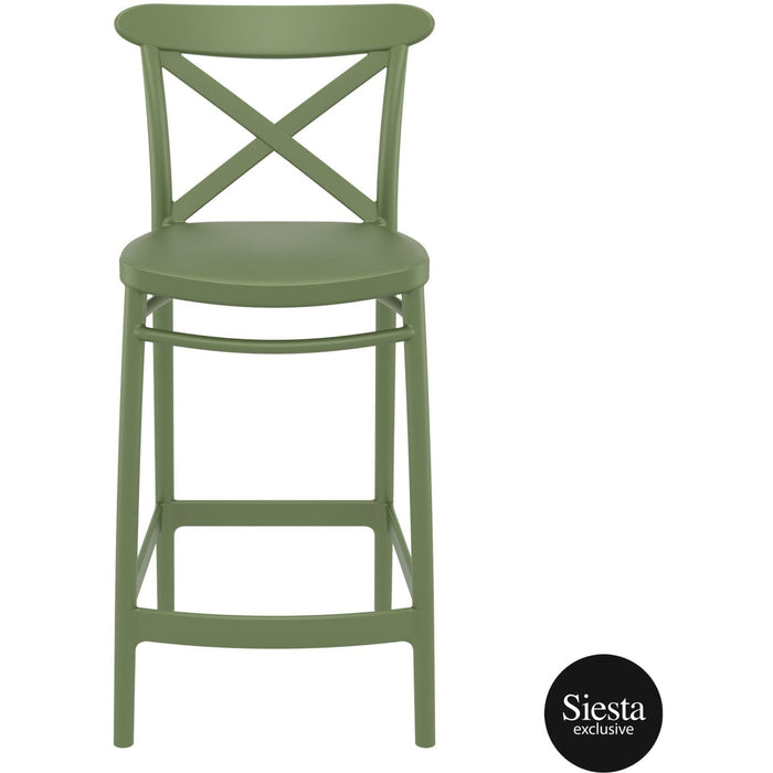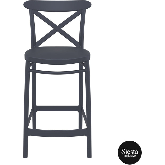 Cross bar stool h.65 cm is produced with a single injection of polypropylene reinforced with glass fibre obtained by means of the latest generation of air moulding technology with neutral tones. For indoor and outdoor use.