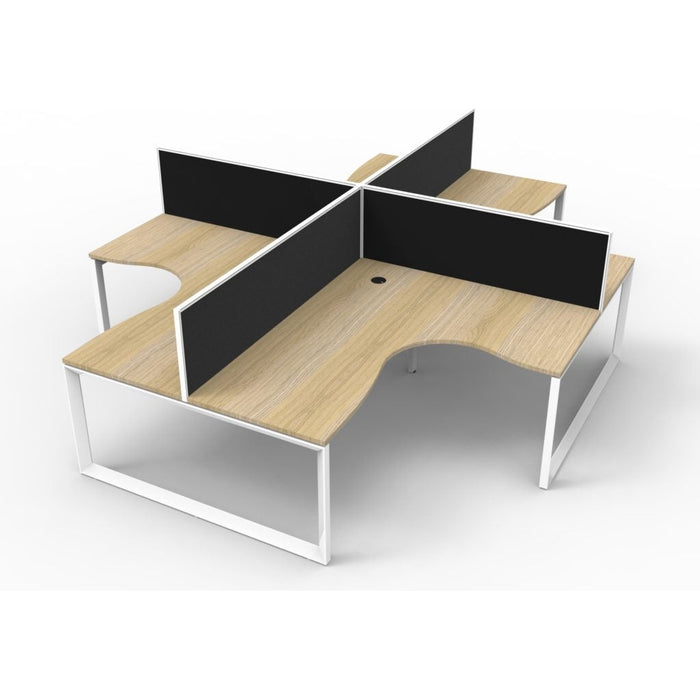 White or oak tops, and black or white frames create a modern, clean look to your fit out. Configure multiple corner workstations together to create pods with or without screens for large workspaces.