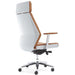 High back luxury quality leather managers chair with adjustable headrest, synchronized tilting mechanism, tilting tension adjustable, aluminium base, Piano baked white paint. 3 year warranty