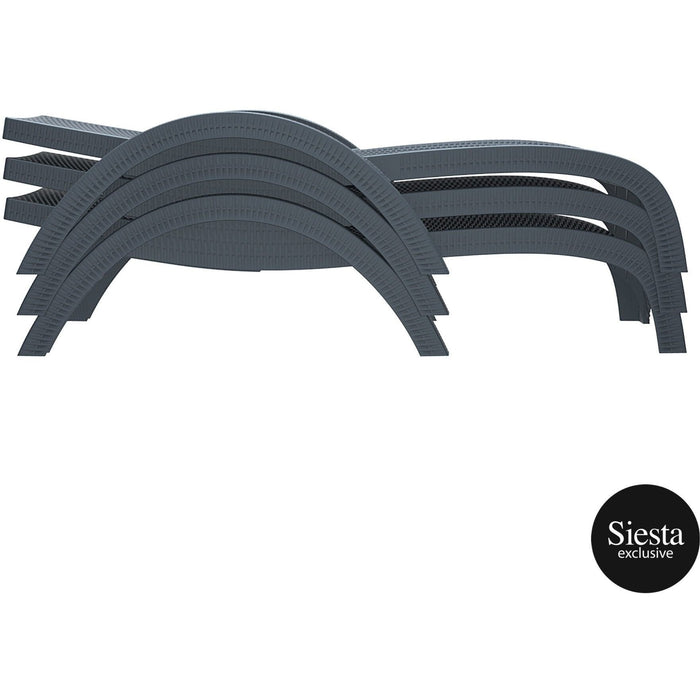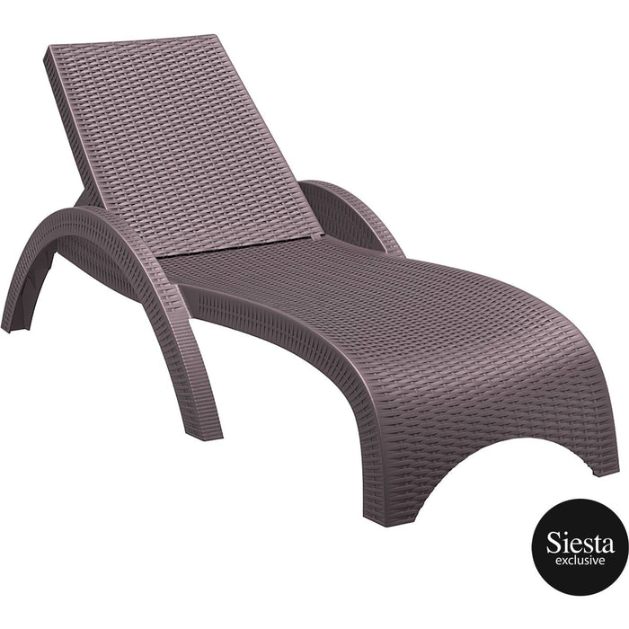 The Fiji Sunlounger is an injection moulded resin lounge, the non-metalic frame will never unravel, rust or decay, with rattan look seat and back. Reinforced with glass fibre to add strength and boost the weight capacity. The Fiji Sunlounger is stackable, designed for outdoor use, UV stable and weather proof, it will not fade or go brittle in Australia’s harsh outdoor conditions. Strong yet lightweight, this sun lounger will add class to your venue. It’s sleek profile is pleasant to the eye so this sun lounger is as charming as it is functional. Very easy to clean, just hose it down.