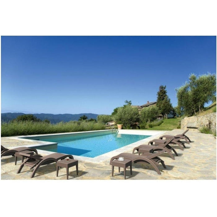 The Fiji Sunlounger is an injection moulded resin lounge, the non-metalic frame will never unravel, rust or decay, with rattan look seat and back. Reinforced with glass fibre to add strength and boost the weight capacity. The Fiji Sunlounger is stackable, designed for outdoor use, UV stable and weather proof, it will not fade or go brittle in Australia’s harsh outdoor conditions. Strong yet lightweight, this sun lounger will add class to your venue. It’s sleek profile is pleasant to the eye so this sun lounger is as charming as it is functional. Very easy to clean, just hose it down.