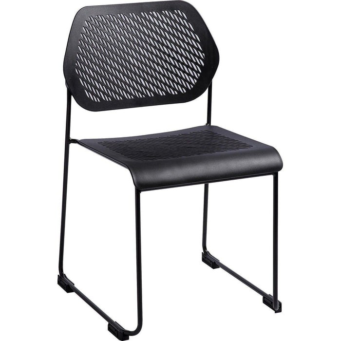 Ideal conference or visitor chair with a black perforated back rest and solid waterfall seat. Black solid rod sled base underframe.