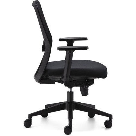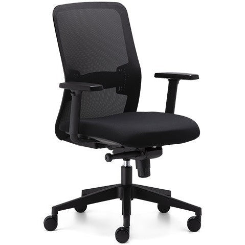 A sleek mesh back office chair with moulded foam seat for comfort at a great price point. Graphite ‘Pronto’ comes standard with adjustable lumbar support, synchro tilt mechanism and the standard black seat fabric and base. Adjustable armrests are optional.