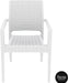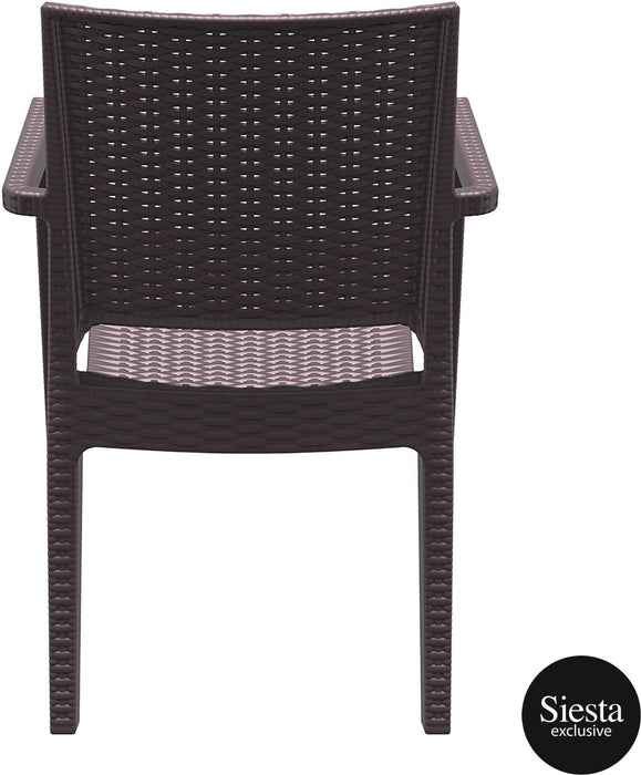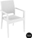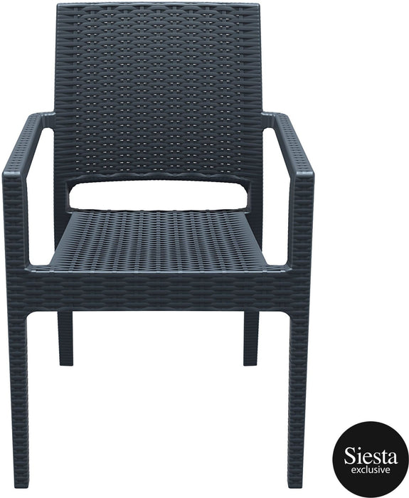 The Ibiza Armchair is an injection moulded resin chair, the non-metalic frame will never unravel, rust or decay, with rattan look seat and back. Reinforced with glass fibre to strengthen the legs and boost the weight capacity. The Ibiza Armchair is stackable, designed for outdoor use, UV stable and weather proof, it will not fade or go brittle in Australia’s harsh outdoor conditions. Strong yet lightweight, this chair will add class to your venue. It’s sleek profile is pleasant to the eye so this chair is as charming as it is functional. Very easy to clean, just hose it down.