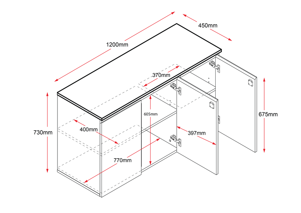 • 3 Door 1200mm or 1500mm wide with 2 Lockable Compartment