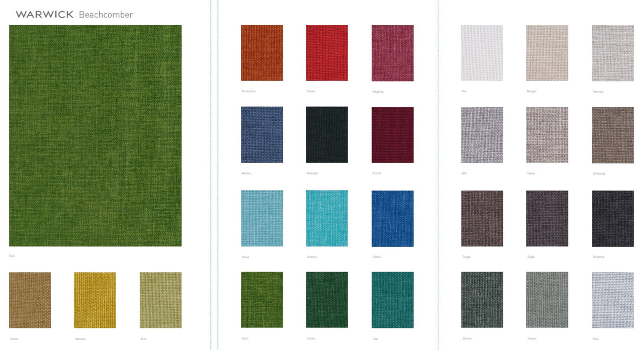 A Warwick classic, BEACHCOMBER is one of our best-selling fabrics and for good reason. FR tested with a heavy commercial rating, BEACHCOMBER is the perfect staple for all your upholstery needs offering timeless style in a multitude of colours and moods. BEACHCOMBER features a textured, two-tone finish from its woven, cationic yarns. A dry and natural handle teamed with a polyester knit backing gives BEACHCOMBER its robust, durable feel.