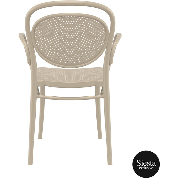 Marcel XL stacking armchair is produced with a single injection of polypropylene reinforced with glass fibre obtained by means of the latest generation of air moulding technology with neutral tones. For indoor and outdoor use.
