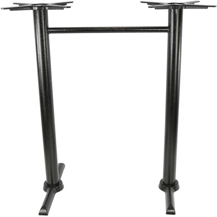 Experience the perfect blend of functionality and elegance with the Marlo Twin Bar Table Base. Constructed from high-quality cast iron, this twin base design is tailored for the demanding needs of the hospitality industry. With a 450x450mm top cross and a pole diameter of 76mm, it radiates durability while its sleek black powder-coated finish infuses a touch of sophistication to any indoor dining space. Designed to support rectangle tops measuring 1200x800mm and weights up to 18kg, this table base assures stability in bustling commercial environments. Standing at a standard dry bar height of 1050mm, it comes with adjustable feet, ensuring a level stance even on uneven terrains. The Marlo Twin Table Base is backed by a 2-year warranty and is dispatched with easy assembly instructions, ensuring longevity and ease of integration into any hospitality setting.