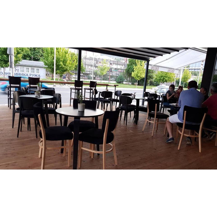 • Stocked in Natural or Wenge Frame with Black Vinyl Seat