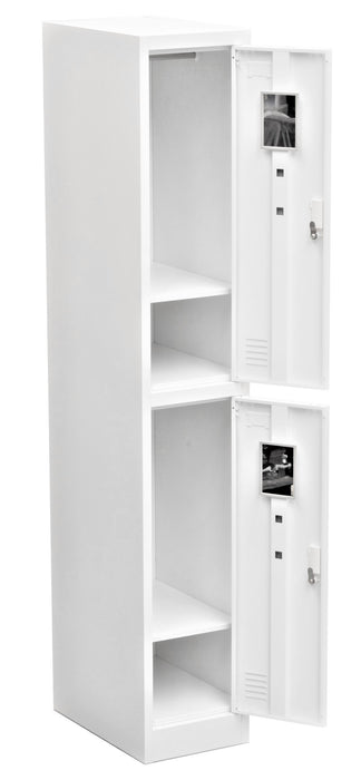 Metal lockers are built to last with a heavy duty construction and full length stiffeners fitted to every door for additional security. The Double Door Locker is fitted with a clothes hanger bar, coat hook, mirror, 1 shelf in each door and is backed by a 5 year warranty.