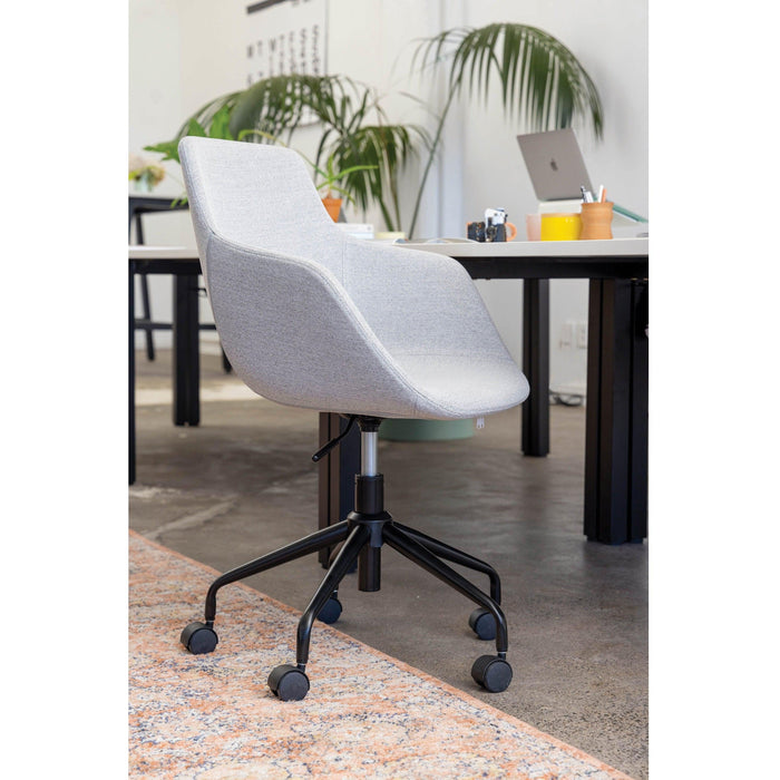 If we had to pick a winner in the looks department, the Mondo Haze neutral toned office chair would be a shoo-in. Achieve an effortless designer look with the light grey upholstery. It’s not all good looks, the Haze is easy-on-the-eye and easy-on-your-spine with its comfortable contoured shell. The adjustable seat height and powdercoated steel 5-star base are more proof this chair’s a winner all round.