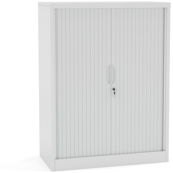 The Nevada tambour unit is available in either black or white Powdercoat and is compatible with all Desking Options. The tambour unit is perfect for a shared office storage system with 2 adjustable shelves creating 3 levels of storage.