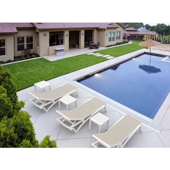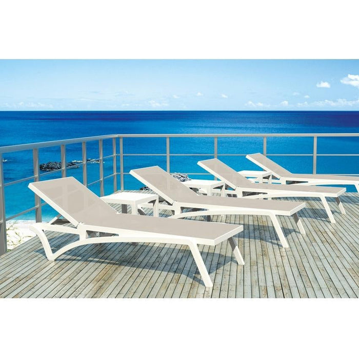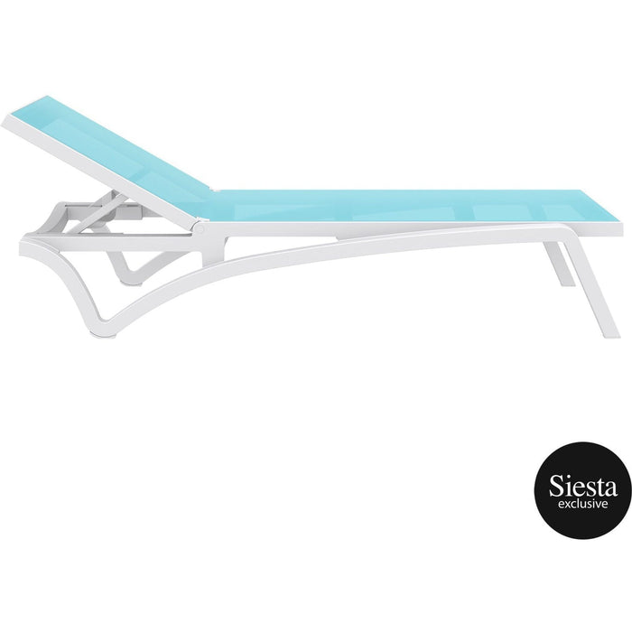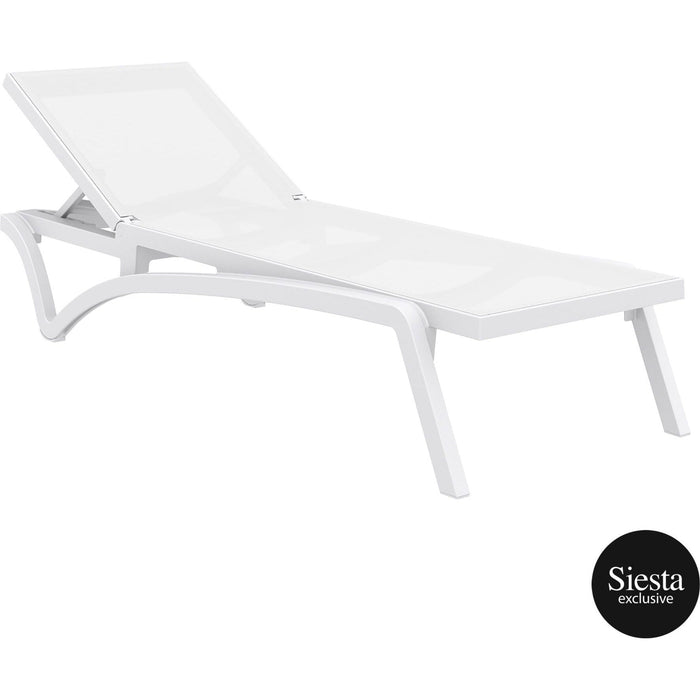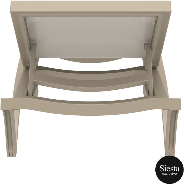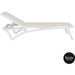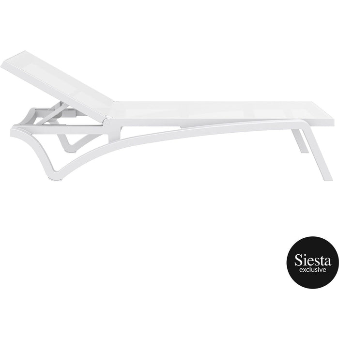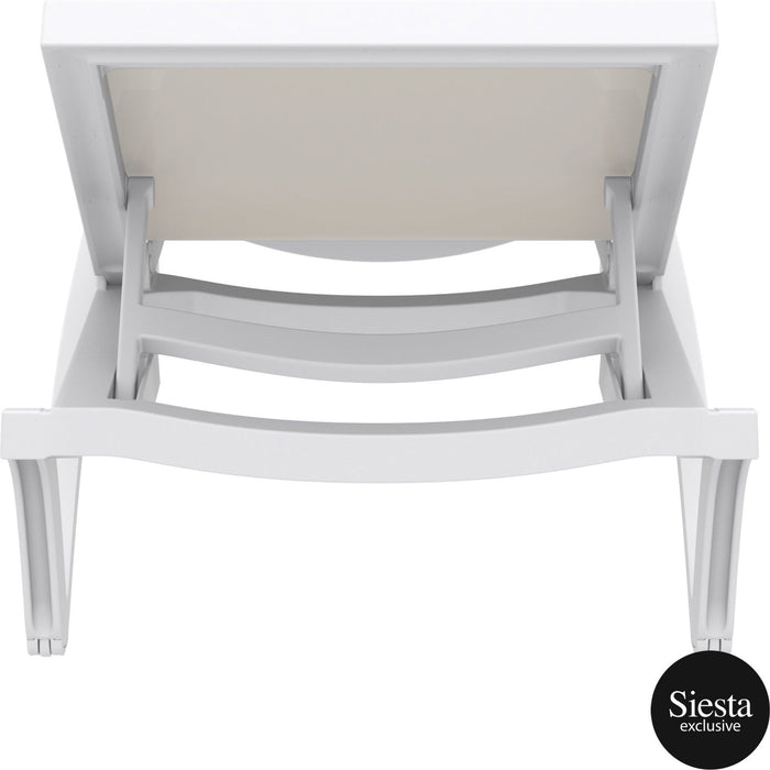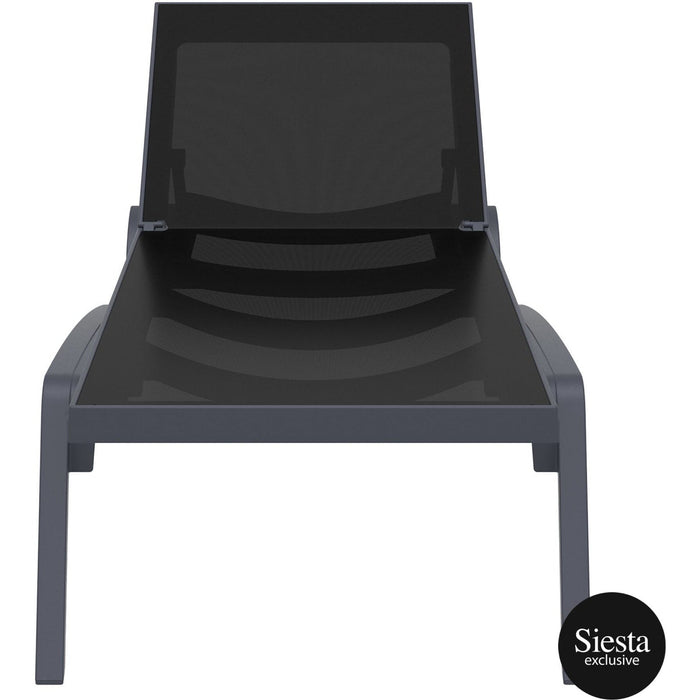 The Pacific Sunlounger is an injection moulded lounge with an extremely durable breathable synthetic fabric cover by Serge Ferrari. The non-metalic frame will never unravel, rust or decay. Reinforced with glass fibre to add strength and boost the weight capacity. The Pacific Sunlounger is stackable, non-slip feet and small wheels, back reclining in 5 positions, designed for outdoor use, UV stable and weather proof, it will not fade or go brittle in Australia’s harsh outdoor conditions. Strong yet lightweight, this sun lounger will add class to your venue. It’s sleek profile is pleasant to the eye so this sun lounger is as charming as it is functional. Very easy to clean, just hose it down.