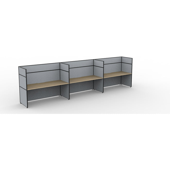 SHUSH30 Workstation - 3 Person - Screen Hung Tops - Oak