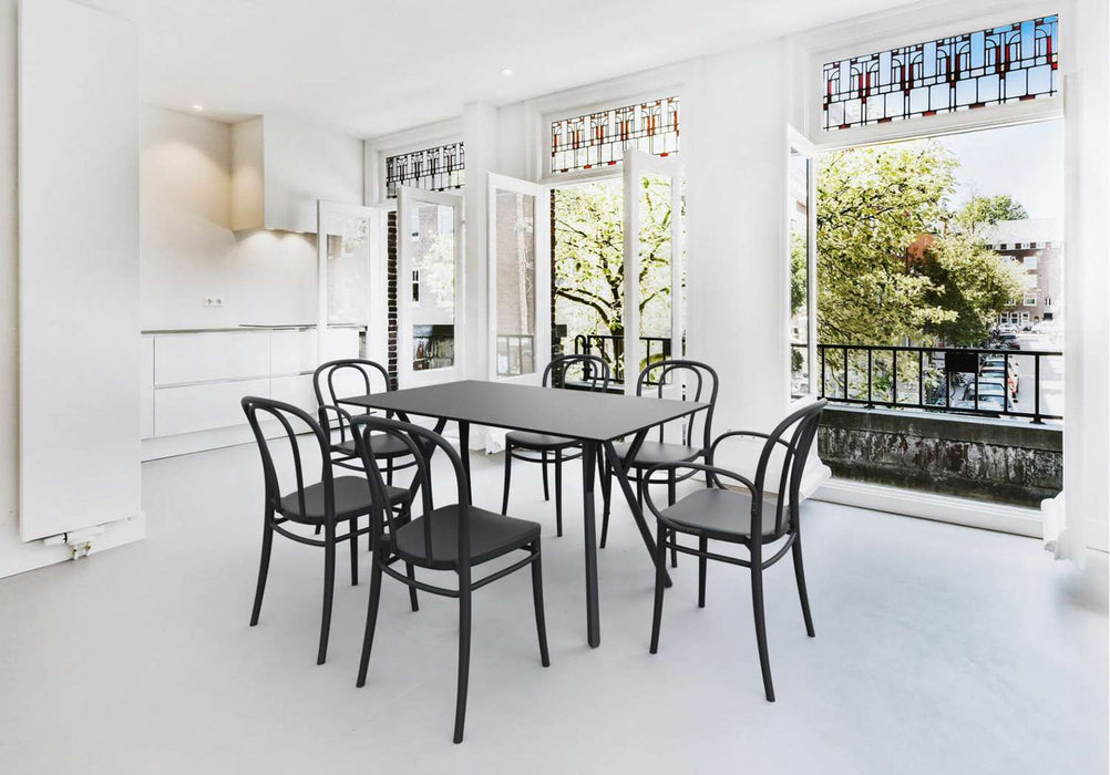 With dimensions of 1400W x 800D x 740H, this table provides ample space for guests to dine or work comfortably. Despite its sturdy build, it remains lightweight for easy transportation and rearrangement. Available in classic black or white, the Max Table 140 effortlessly complements any decor style, adding a touch of sophistication to cafes, restaurants, or outdoor patios.