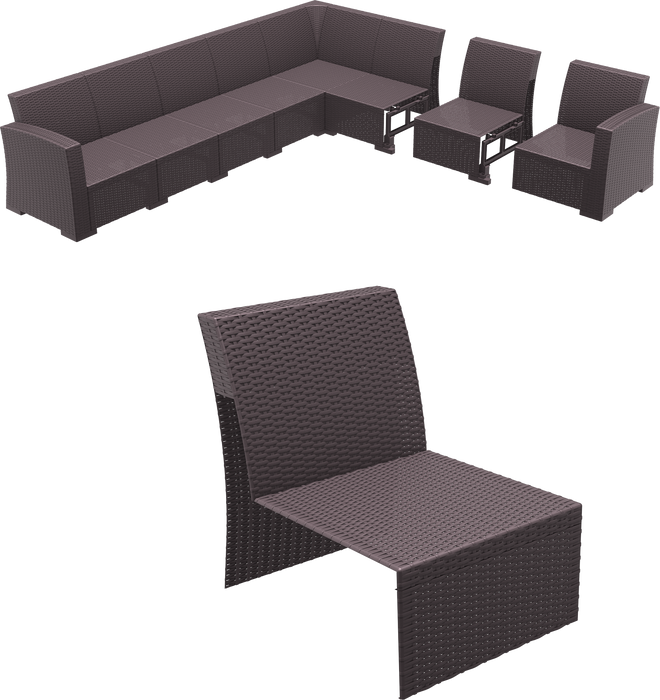 The Monaco Extension Part by Siesta offers durability and versatility for indoor and outdoor commercial seating, with its high-quality polypropylene construction and ample dimensions. Backed by rigorous testing, a 5-year warranty, and eco-friendly credentials, it seamlessly integrates with existing Monaco furniture to provide a comfortable and sustainable seating solution.