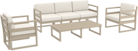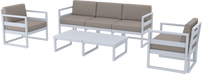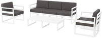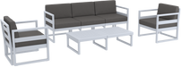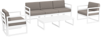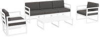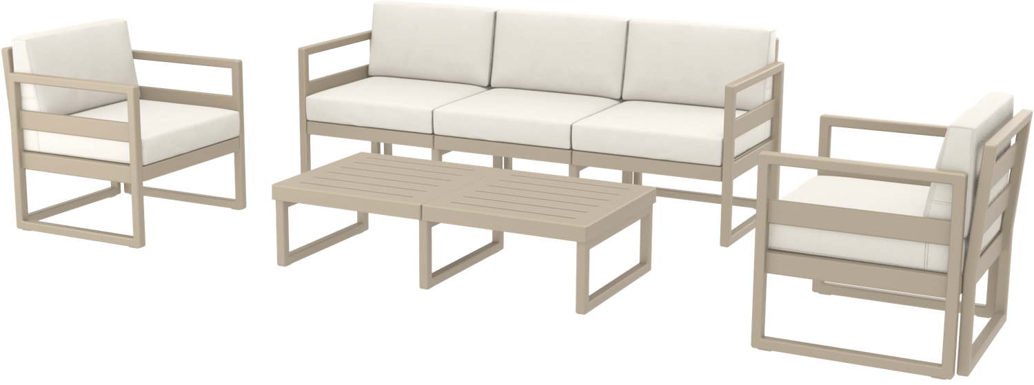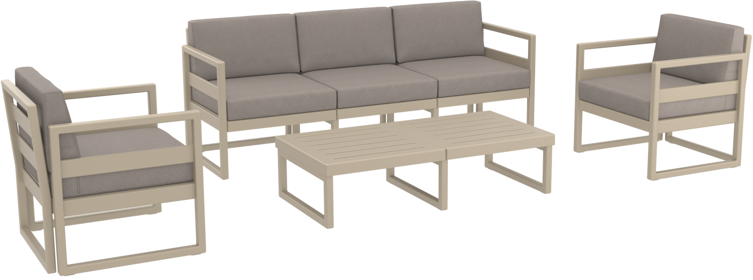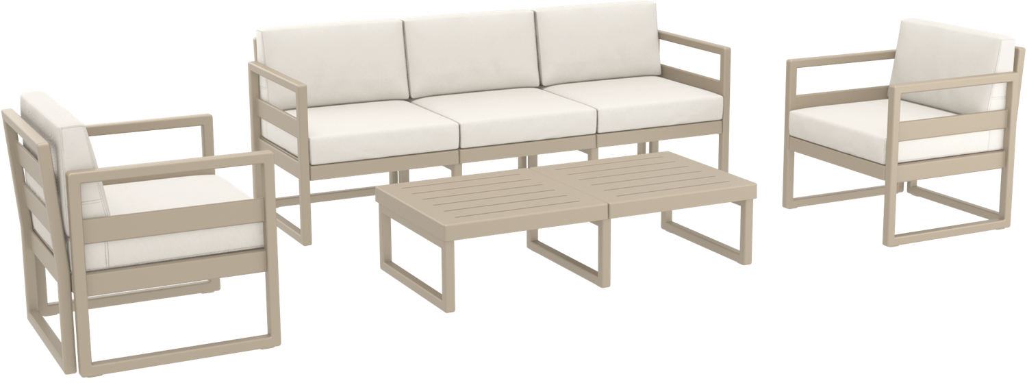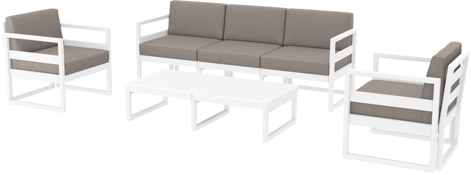 - Package includes 3x Mykonos Lounge Armchairs (with cushions) 2x Mykonos Extension Parts (with cushions) & 2x Mykonos Lounge Tables