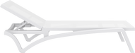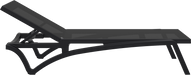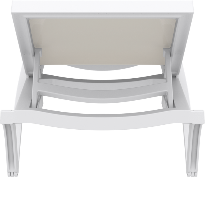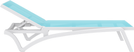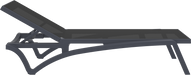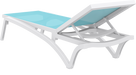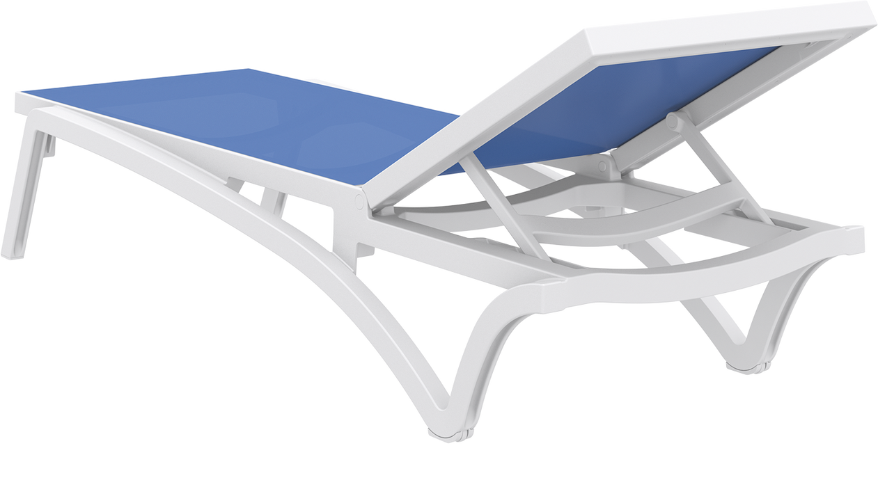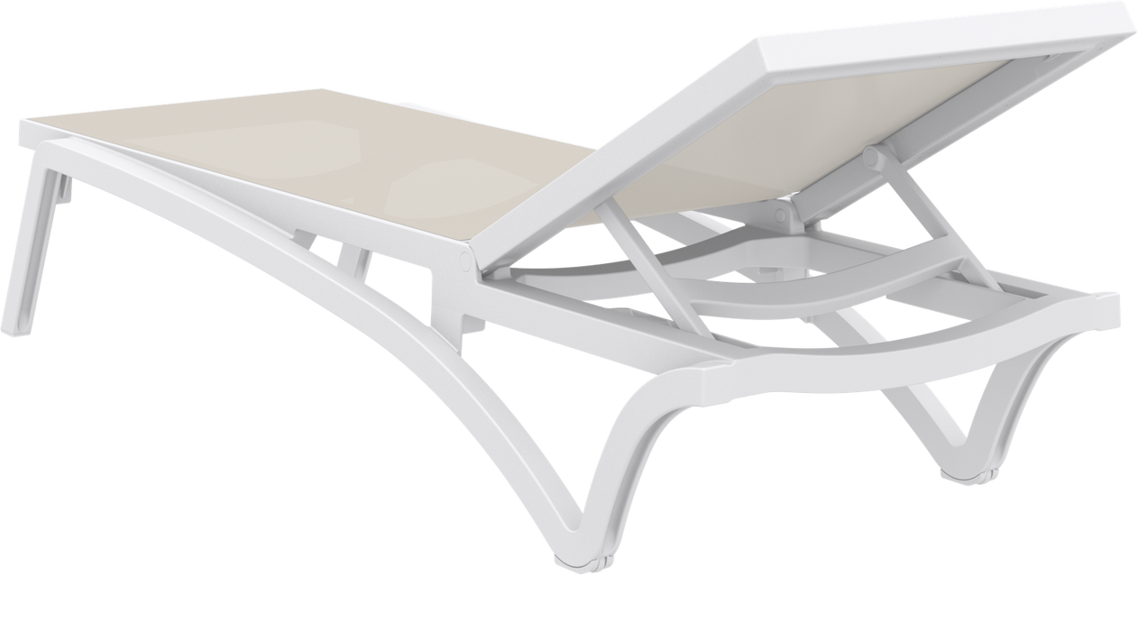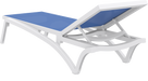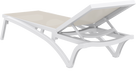 The Pacific Sunlounger is an injection moulded lounge with an extremely durable breathable synthetic fabric cover by Serge Ferrari. The non-metallic frame will never unravel rust or decay. Reinforced with glass fibre to add strength and boost the weight capacity. The Pacific Sunlounger is stackable non-slip feet and small wheels back reclining in 5 positions, designed for outdoor use. UV stable and weather proof it will not fade or go brittle in Australia's harsh outdoor conditions. Strong yet lightweight this sun lounger will add class to your venue. It's sleek profile is pleasant to the eye so this sun lounger is as charming as it is functional. Very easy to clean just hose it down.