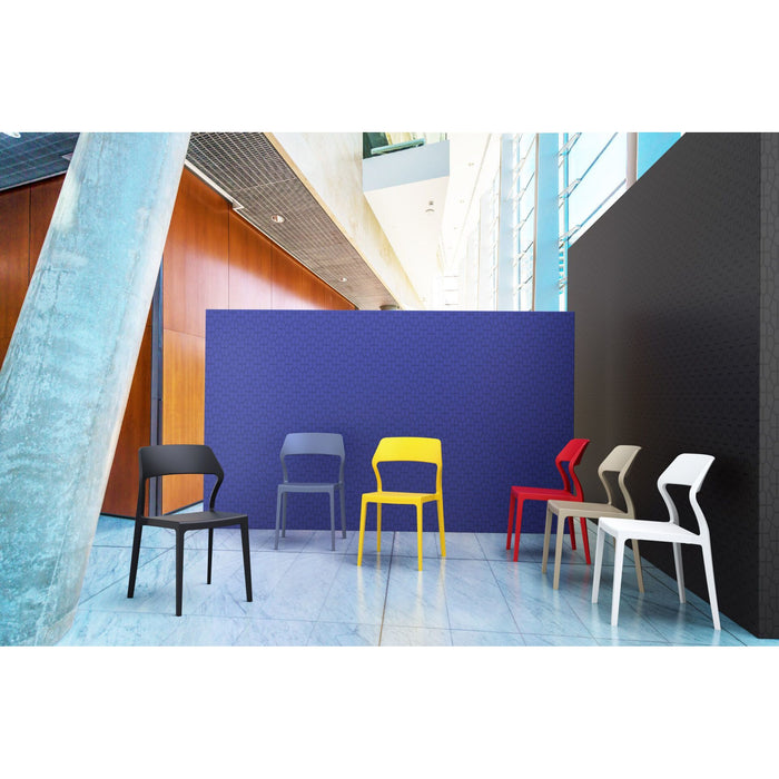 The Snow chair is produced with a single injection of polypropylene reinforced with glass fibre obtained by means of the latest generation of air moulding technology with neutral tones. For indoor and outdoor use.? Available in Black, Anthracite, Taupe, Red, Mango and White.