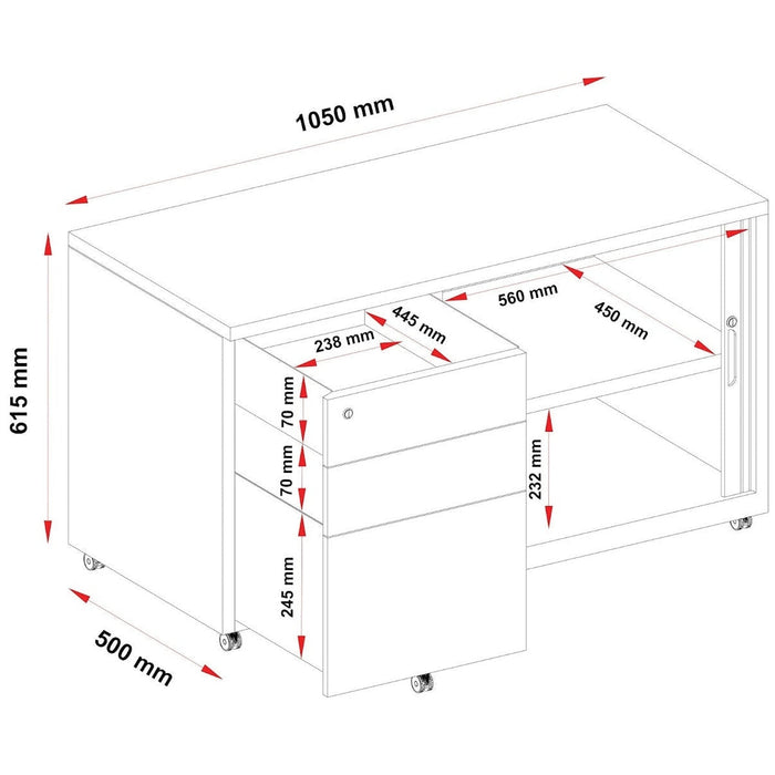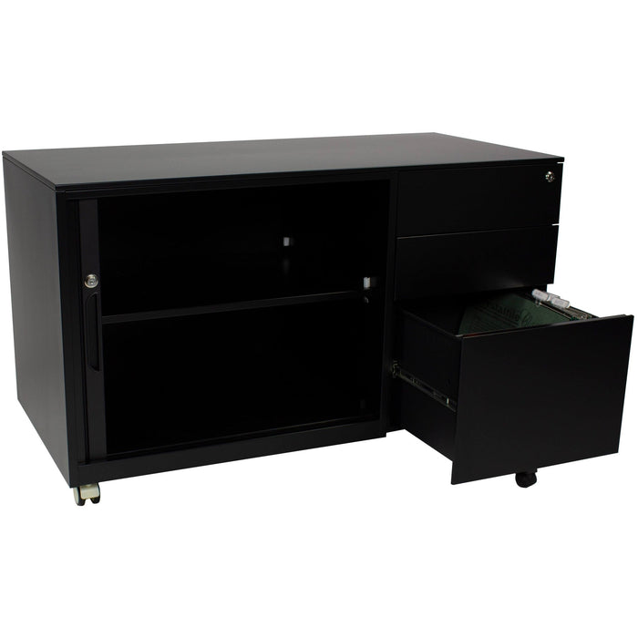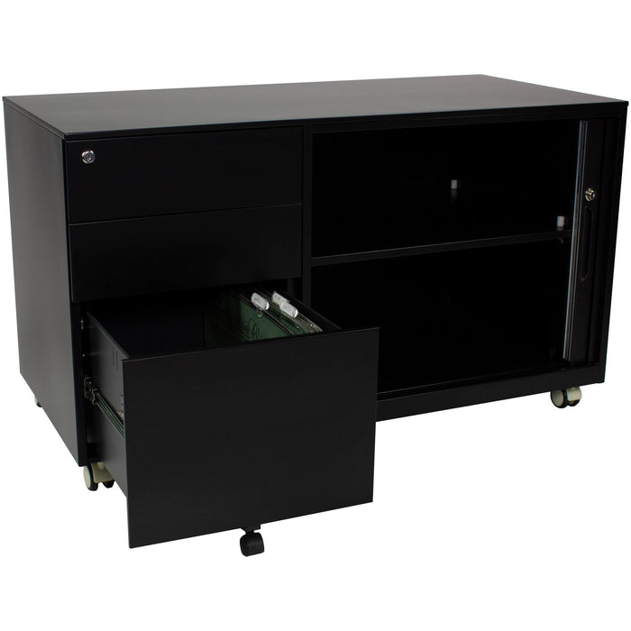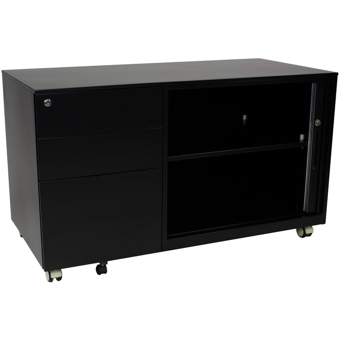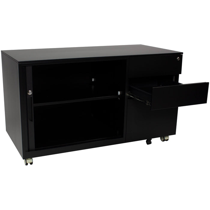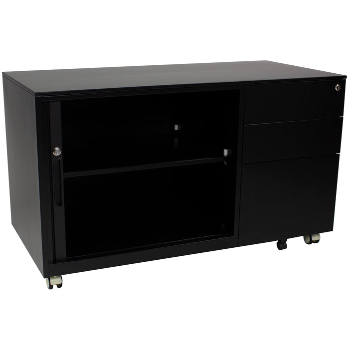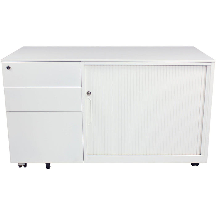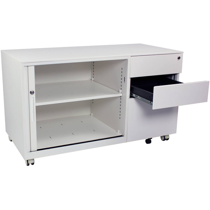 The Steelco Trimline Mobile Caddy is ideal for under desk storage or as an extended workspace storage unit. This unit is available with either a tambour side door or as an open shelf side and features two box drawers and one suspension file drawer.