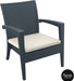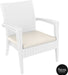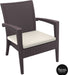The Tequila Lounge Armchair is an injection moulded resin chair, the non-metalic frame will never unravel, rust or decay, with rattan look seat and back. Reinforced with glass fibre to strengthen the legs and boost the weight capacity. The Tequila Lounge Armchair is stackable, designed for outdoor use, UV stable and weather proof, it will not fade or go brittle in Australia’s harsh outdoor conditions. Strong yet lightweight, this chair will add class to your venue. It’s sleek profile is pleasant to the eye so this chair is as charming as it is functional. Very easy to clean, just hose it down.