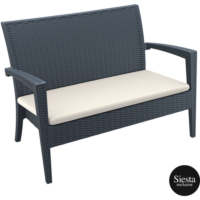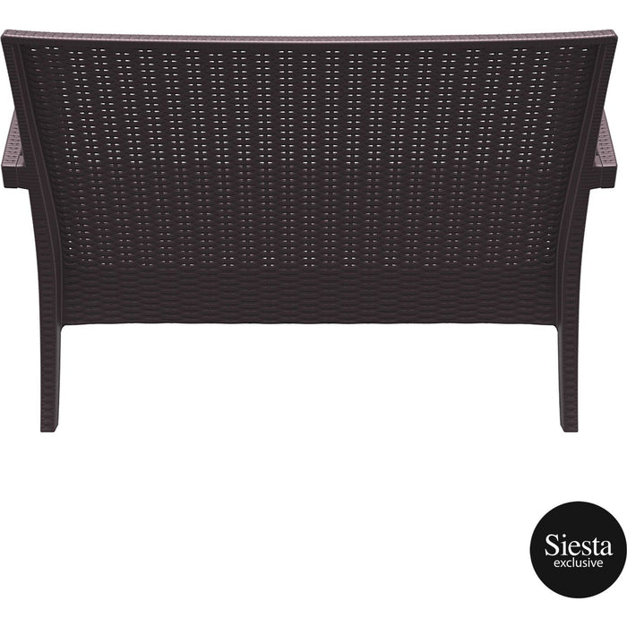 The Tequila Lounge Sofa is an injection moulded resin chair, the non-metalic frame will never unravel, rust or decay, with rattan look seat and back. Reinforced with glass fibre to strengthen the legs and boost the weight capacity. The Tequila Lounge Sofa is stackable, designed for outdoor use, UV stable and weather proof, it will not fade or go brittle in Australia’s harsh outdoor conditions. Strong yet lightweight, this chair will add class to your venue. It’s sleek profile is pleasant to the eye so this chair is as charming as it is functional. Very easy to clean, just hose it down.