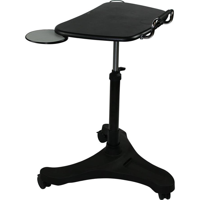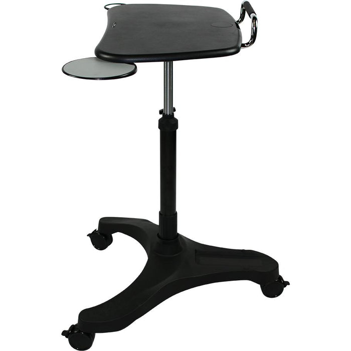 The new UPANATOM Mobile Laptop Sit Stand desk is a compact economical manual solution. Featuring a single lever gas assist height adjustable poly propylene platform large enough to suit a 17 inch laptop.