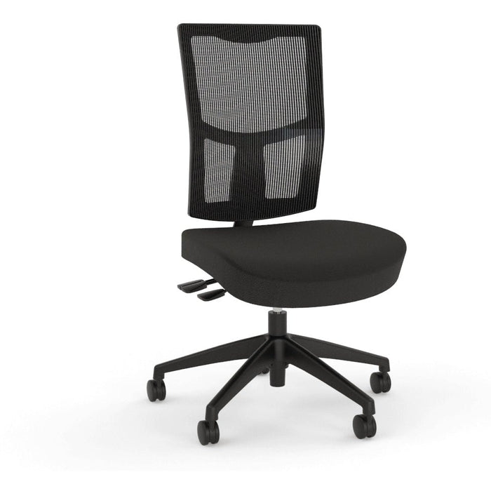 Freeway Urban chair with Black nylon base and black powdercoated 3 lever mechanism. No arms, Black mesh backrest, Backrest height & angle adjustable, Seat height and angle adjustable - upholstered in Black Breathe fabric. 160kg Rating, 10year Guarantee
