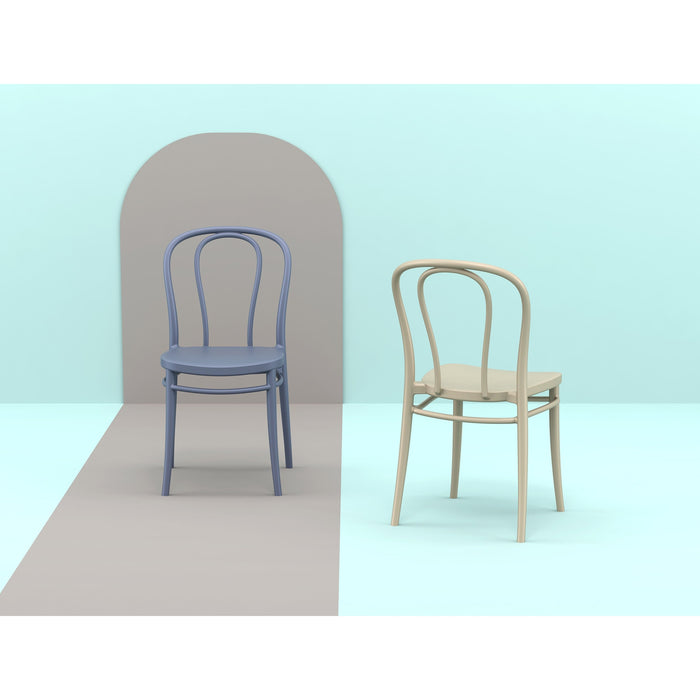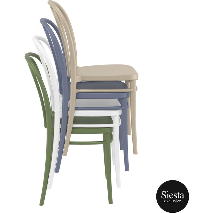 Victor stacking chair is produced with a single injection of polypropylene reinforced with glass fibre obtained by means of the latest generation of air moulding technology with neutral tones. For indoor and outdoor use.